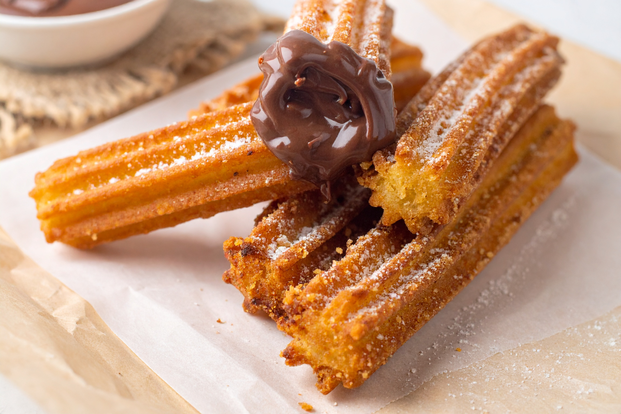 Versgebakken churros met diverse toppings voor een perfecte smaakbeleving.